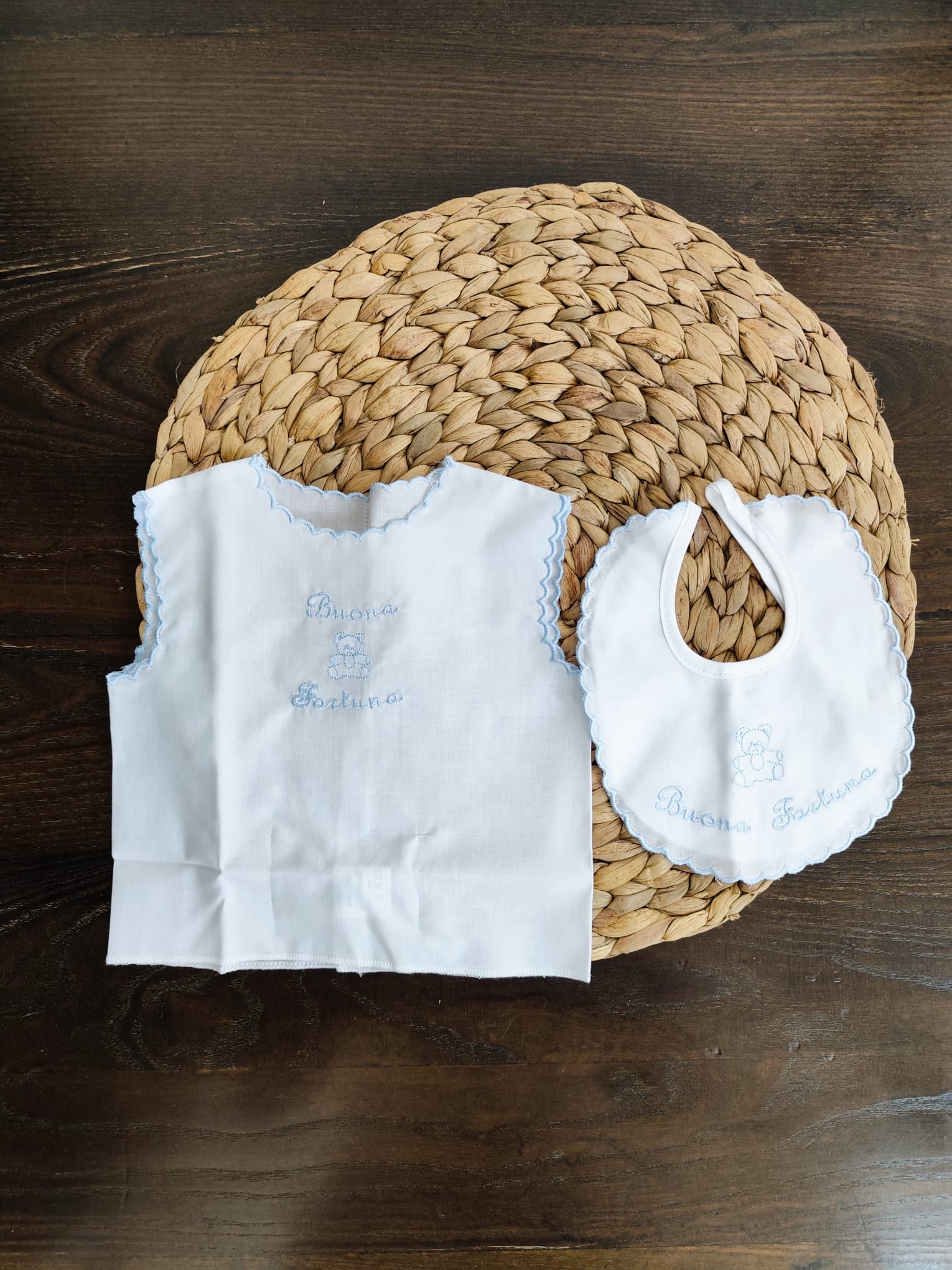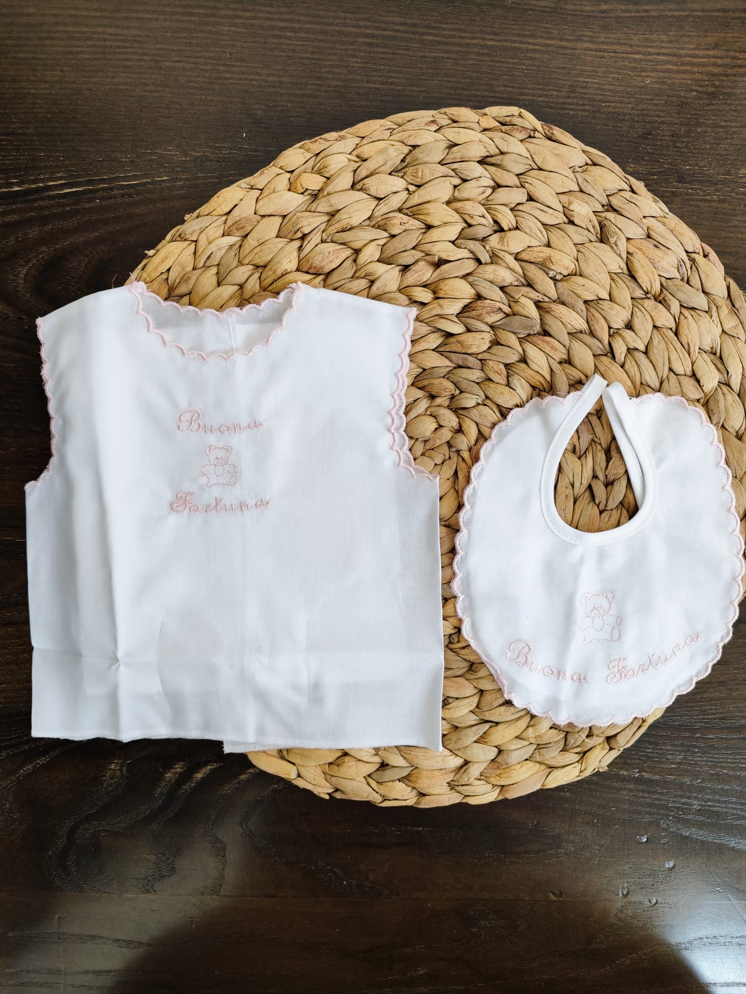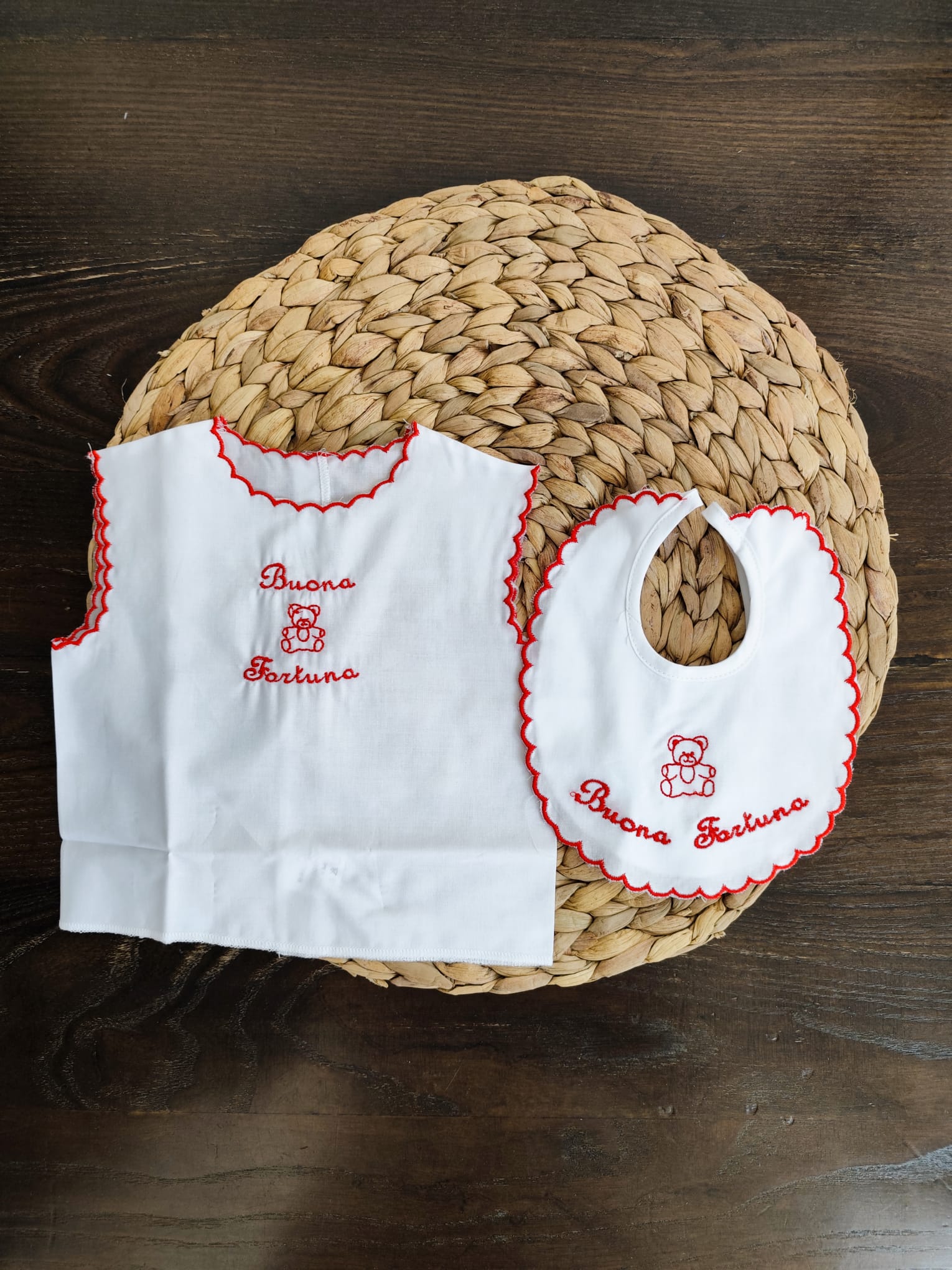 set camicino e bavetta della fortuna 100% cotone.