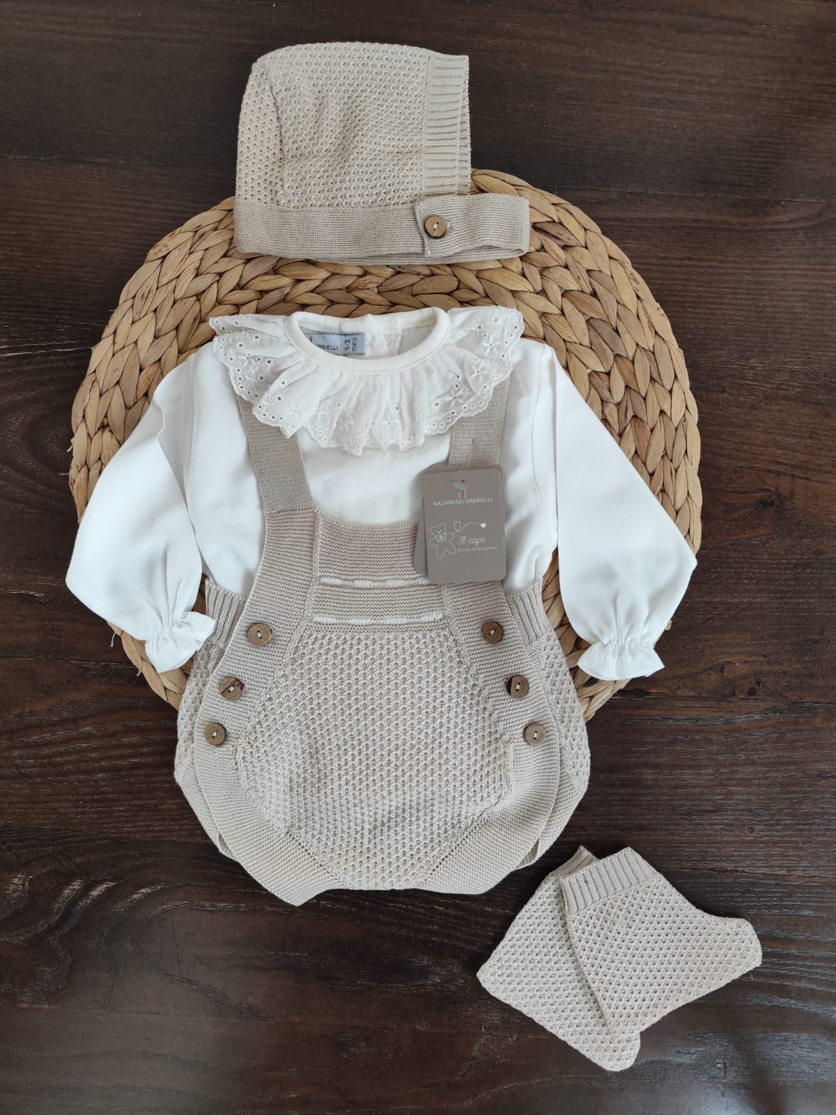 elegante e morbido set in filo di cotone beige femminuccia ideale per la primavera/estate