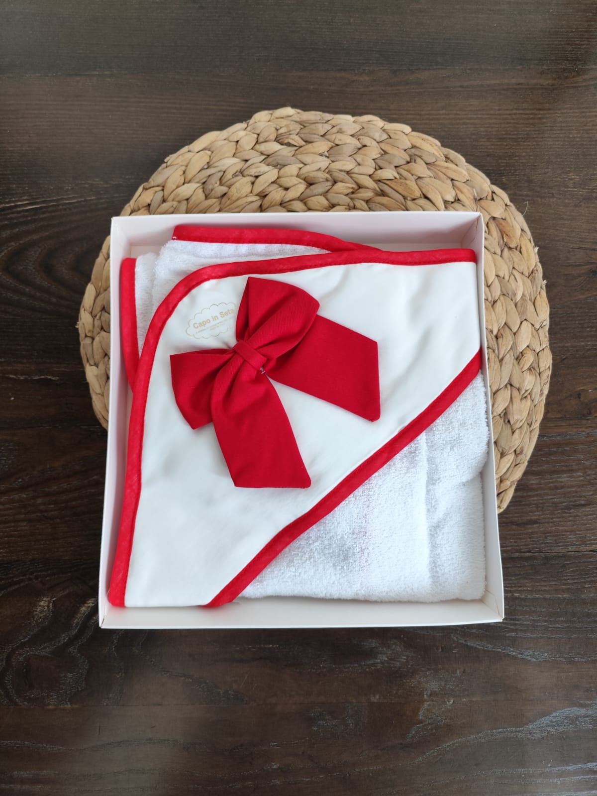 Baby accappatoio TRIANGOLO spugna con fiocco rosso