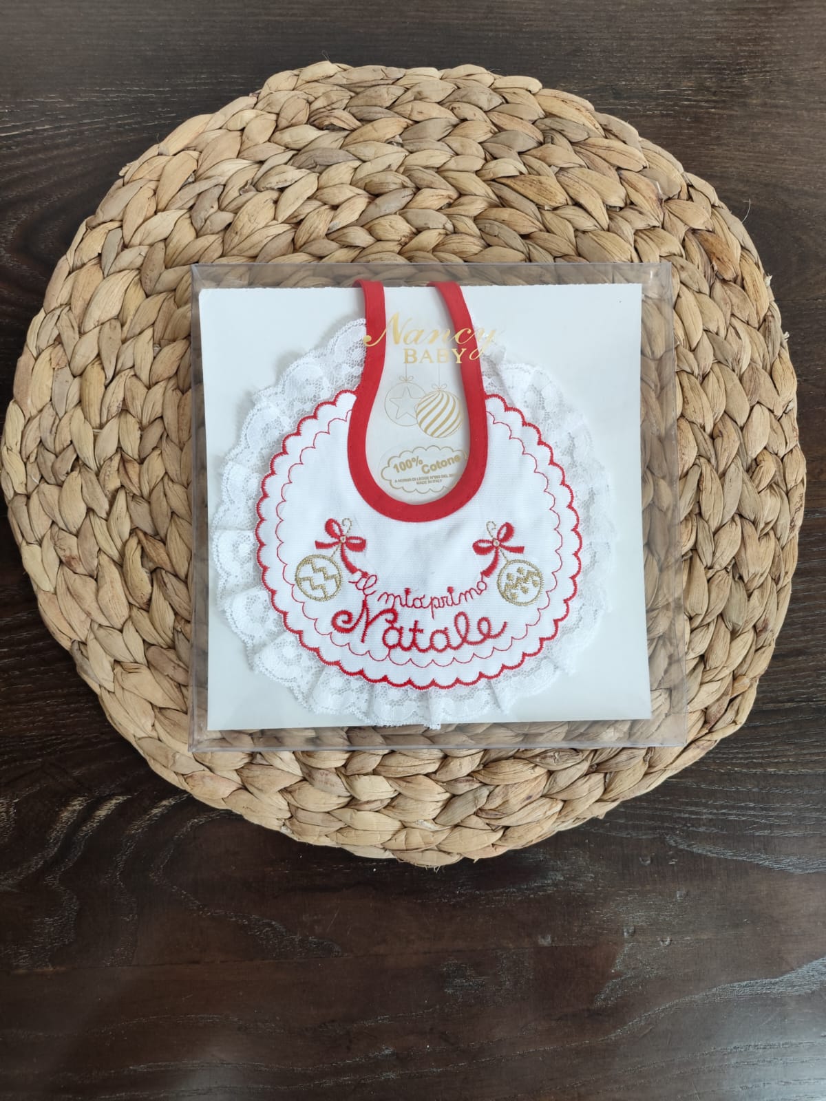 Bavetta Natalizia Unisex " Il Mio Primo Natale" 100% COTONE in piquet con merletto in confezione regalo