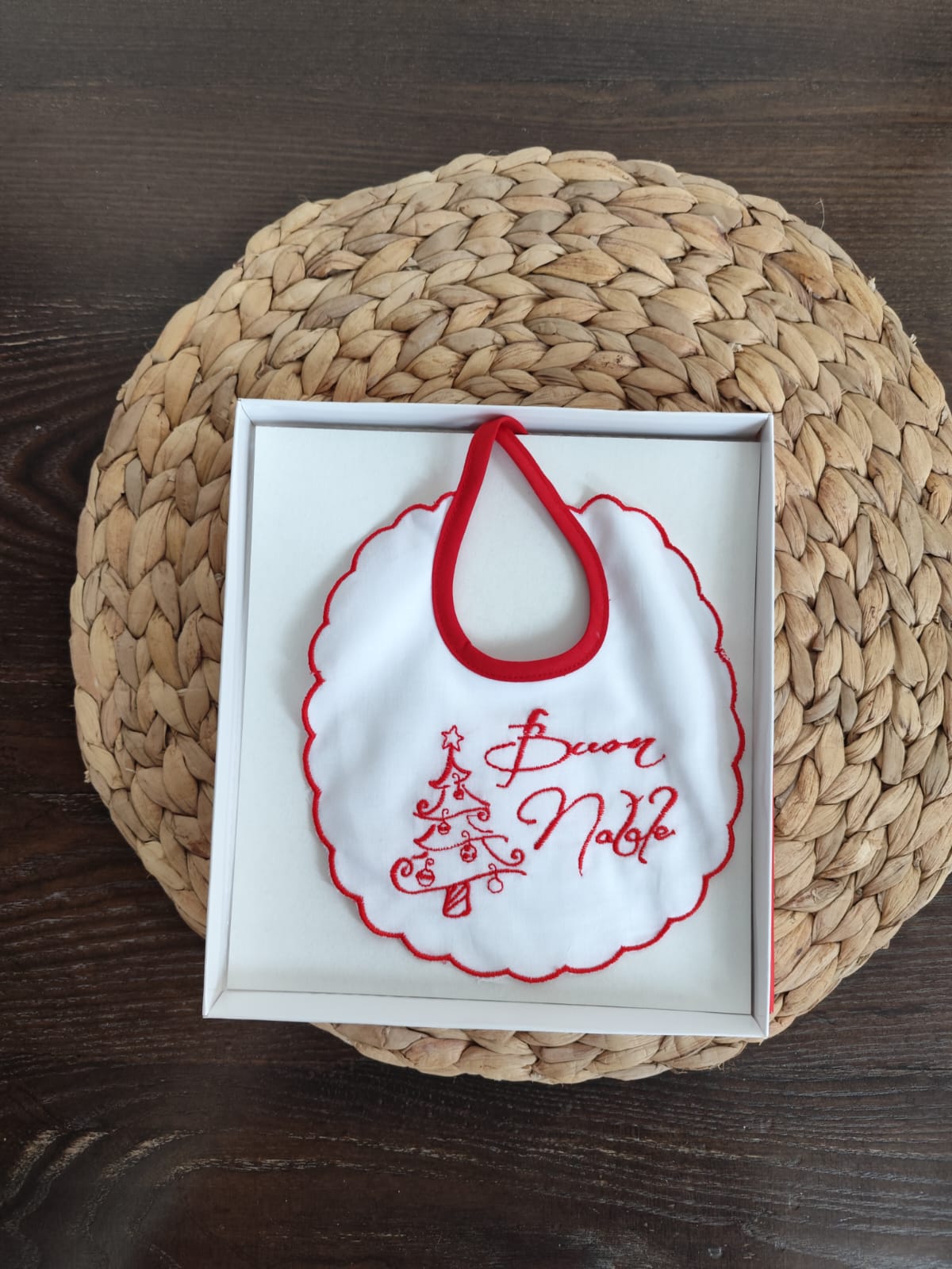 Bavetta Natalizia Unisex " Buon Natale" 100% COTONE in batista in confezione regalo
