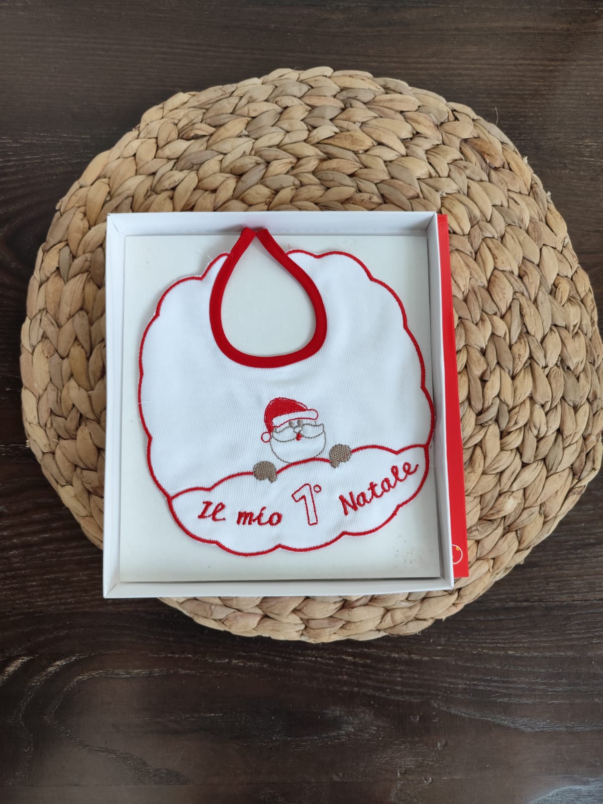 Bavetta Natalizia Unisex "il mio primo Natale" 100% COTONE in PIQUET in confezione regalo