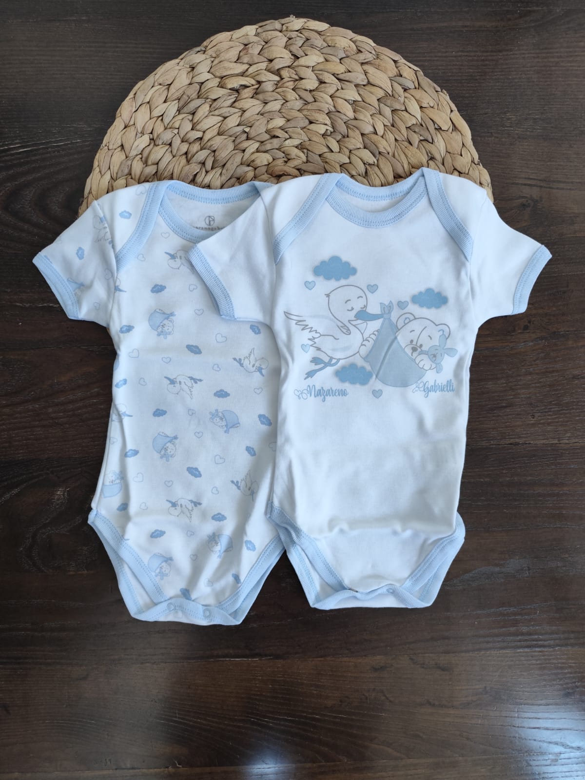 Body 100% Caldo Cotone con scollo americano confezione da 2 pezzi disegno "cicogna"