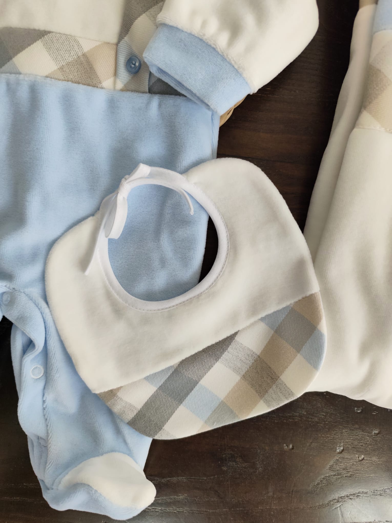 morbido ed elegante coordinato nascita neonato in ciniglia "Gabriel" composto da: