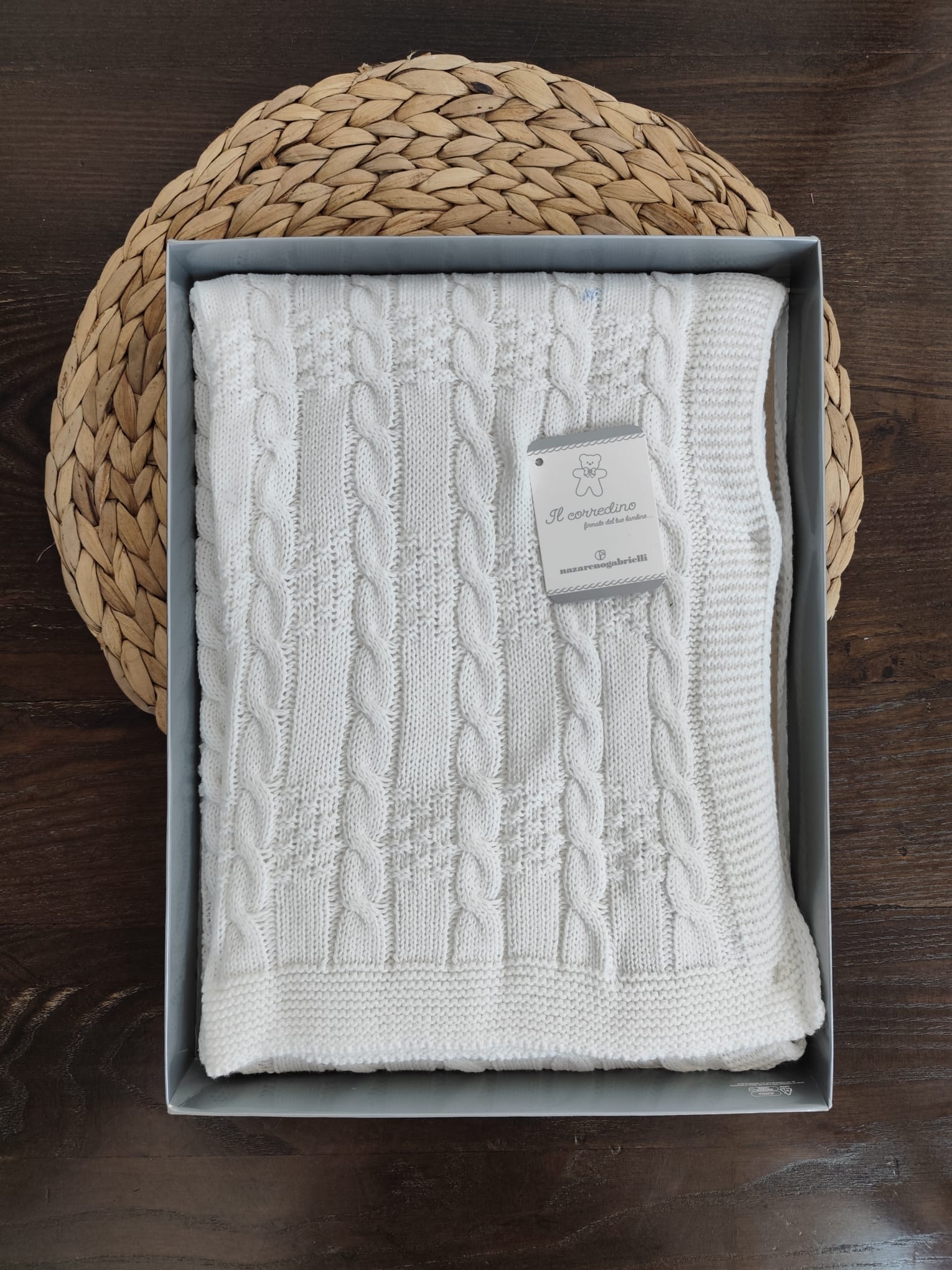 Copertina Culla Panna in caldo cotone con Disegno trecce Lavorata periodo ideale estate/autunno