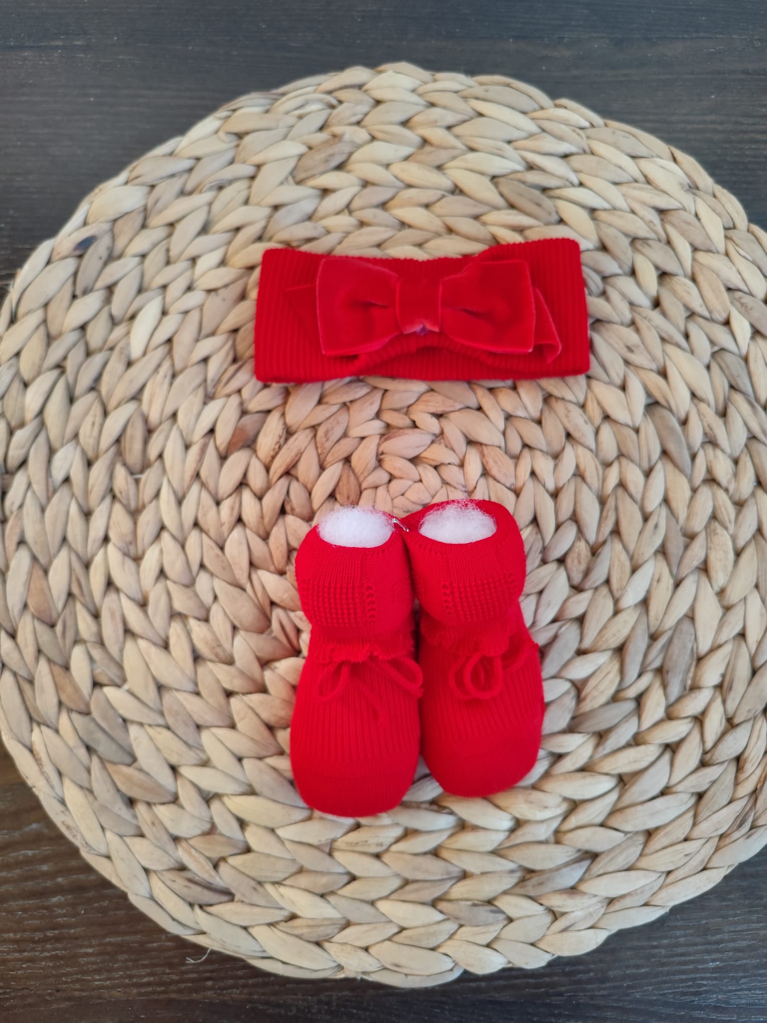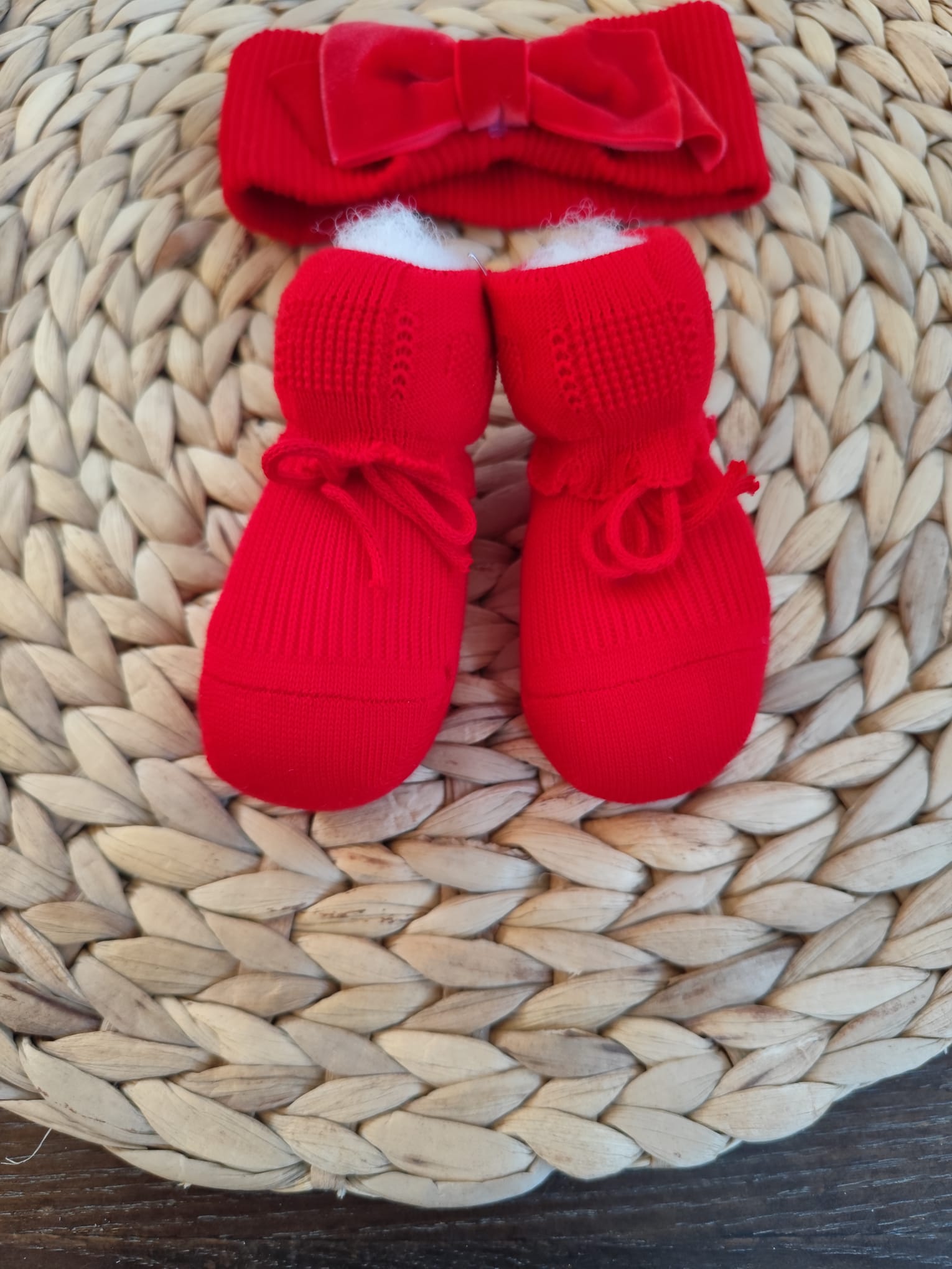 set fascia per capelli natalizia e babbucce in caldo cotone taglia unica 0/3 mesi