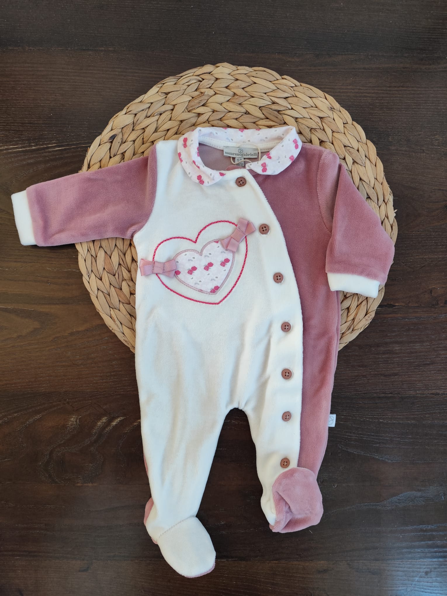 tutina in ciniglia bianca e rosa antico