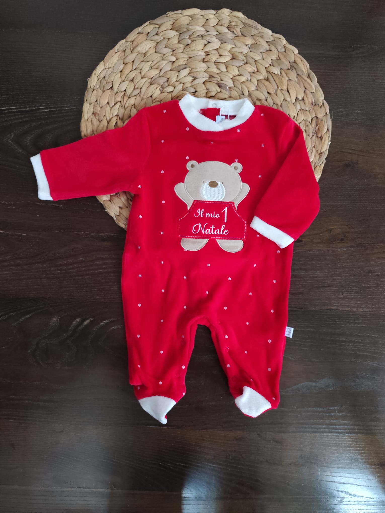 Tutina unisex natale con in ciniglia "il mio primo natale"